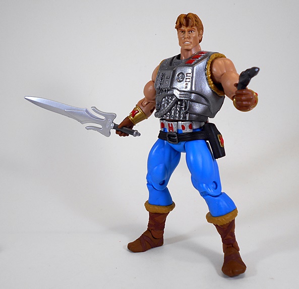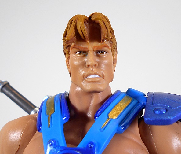 The head sculpt is new, but the nod to NA He-Man is certainly there. Besides the ponytail he’s got a younger look and a more angular face. The hair sculpt is particularly great with the tussled bangs.