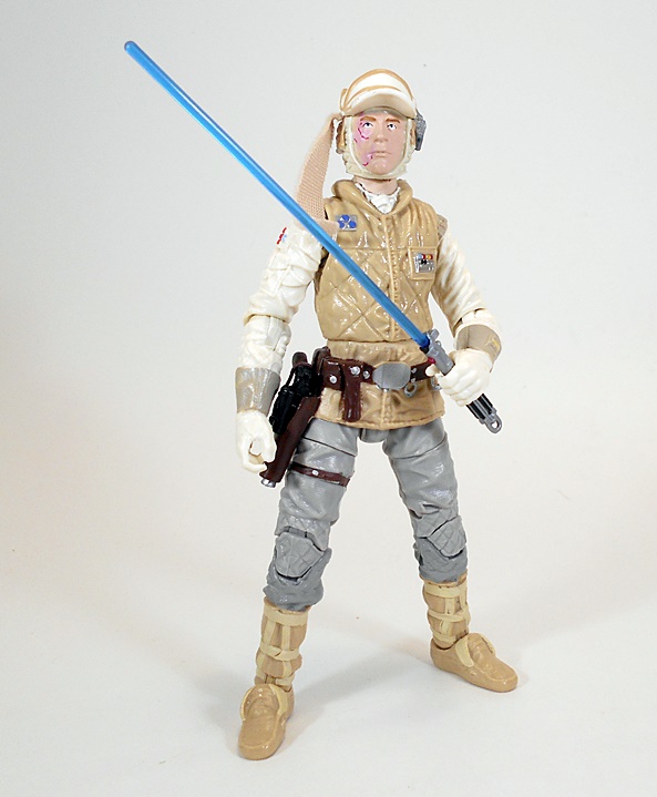 Luke comes with both is blaster pistol and his lightsaber. The blade can be removed. We’ve seen these accessories before. Unfortunately the lightsaber hilt doesn’t have the same nice silvery paint as the hilts included with X-Wing and Bespin Luke. It’s just flat gray. The blade can still be removed.