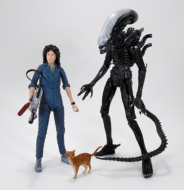 NECA has been buttering their bread with the Aliens and Predator license for a while now and doing a bang up job at it. And, yes, it’s taken me longer than I thought it would for me to finally buy in to NECA’s Alien line, but they’ve finally beaten me down and I could resist no longer. The Kenner-inspired Alien Vs Predator 2-pack was the ultimate gateway drug, but it’s the figures from the original film that I’ve been jonesing after the hardest. I’m most certainly in the minority when I say that the sequel Aliens hasn’t aged well for me, but the original film still has a place near and dear to my heart. It’s a near perfect blending of sci-fi and horror and there’s always been a copy of it on my media shelf, whether it be VHS, DVD and ultimately Blu-Ray. While I will no doubt pick up some of the other figures in this line (I’m definitely looking forward to getting the Alien: Isolation and Alien 3 figures) it’s the ones based on the first film that I’ll be focusing on first. And what better place to start than with Lt. Ripley and Big Chap himself.
