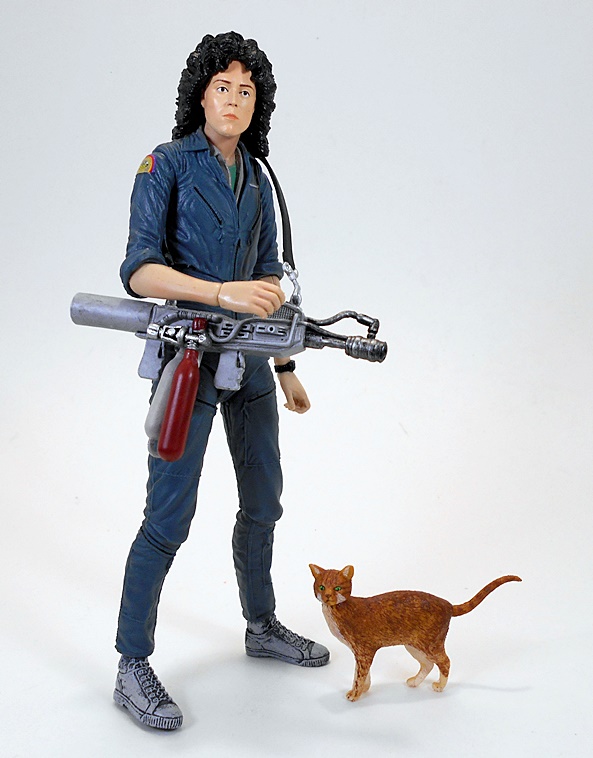 Accessories? Well, you get Jonesy the cat. How cool is that? He’s a fairly simple little piece with articulation in the neck and base of the tail. The wash on him makes it look like he’s been crawling through the Nostromo’s ventilation system watching the humans getting picked off one by one. Kitty needs a bath.