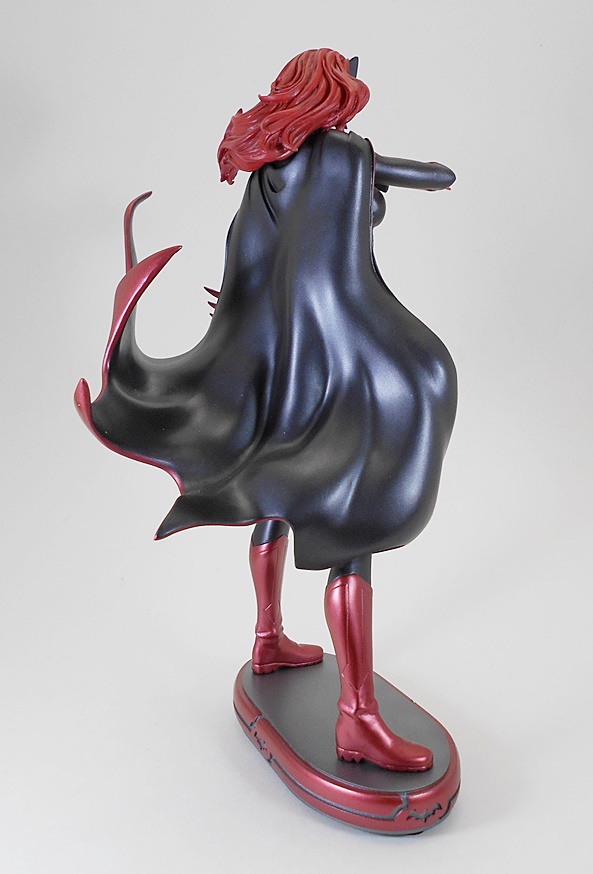 If you’ve seen one of DCC’s Cover Girls statue box you’ve seen them all. The art and size may change to suit the contents, but you’re still getting a fully enclosed box with a brick of styrofoam inside it. There’s a colored swipe down the front to match the character and some nice shots of the statue on the front and side panels. Everything is collector friendly and the only assembly required is pegging the statue into the base. I can’t say as I’m a huge Batwoman fan. I’ve barely read anything that she appears in. But I fell in love with Kotobukiya’s Bishoujo version of the character and the same happened here as well.