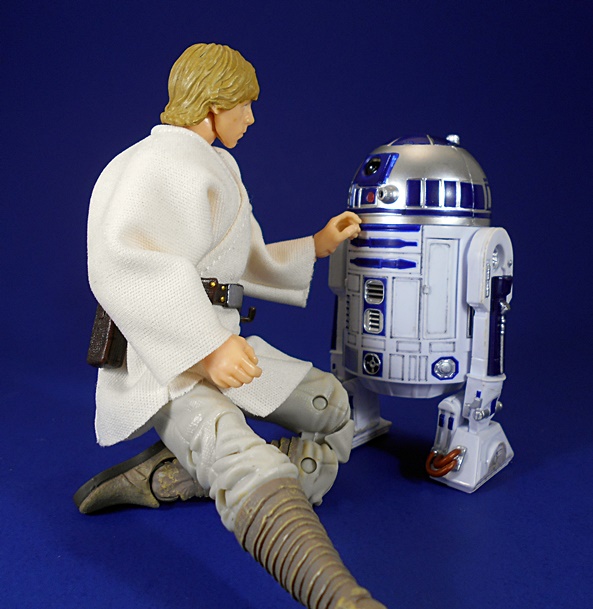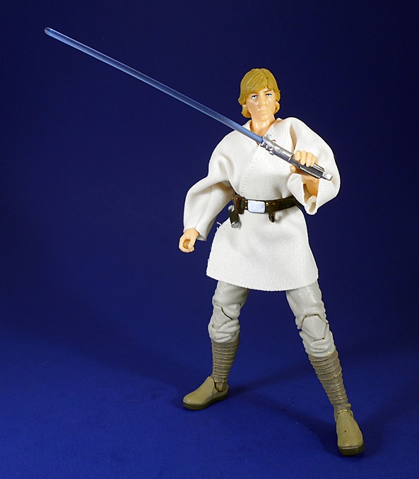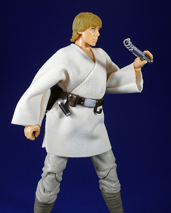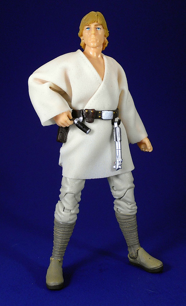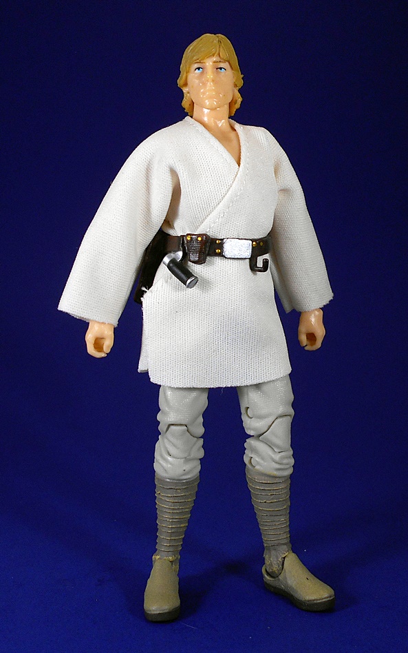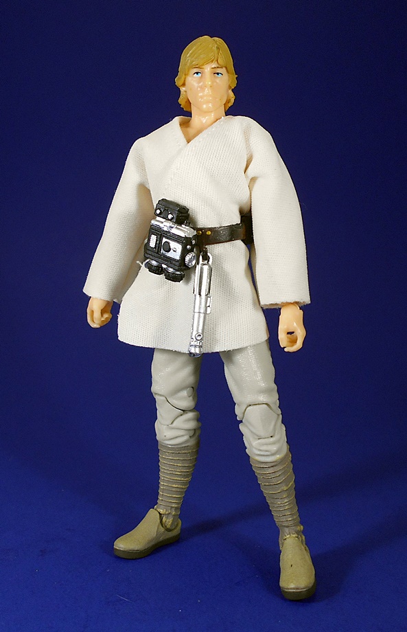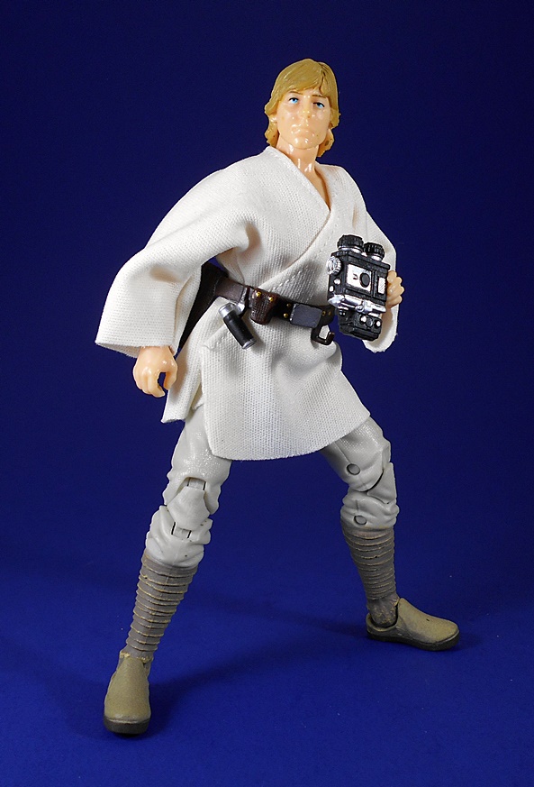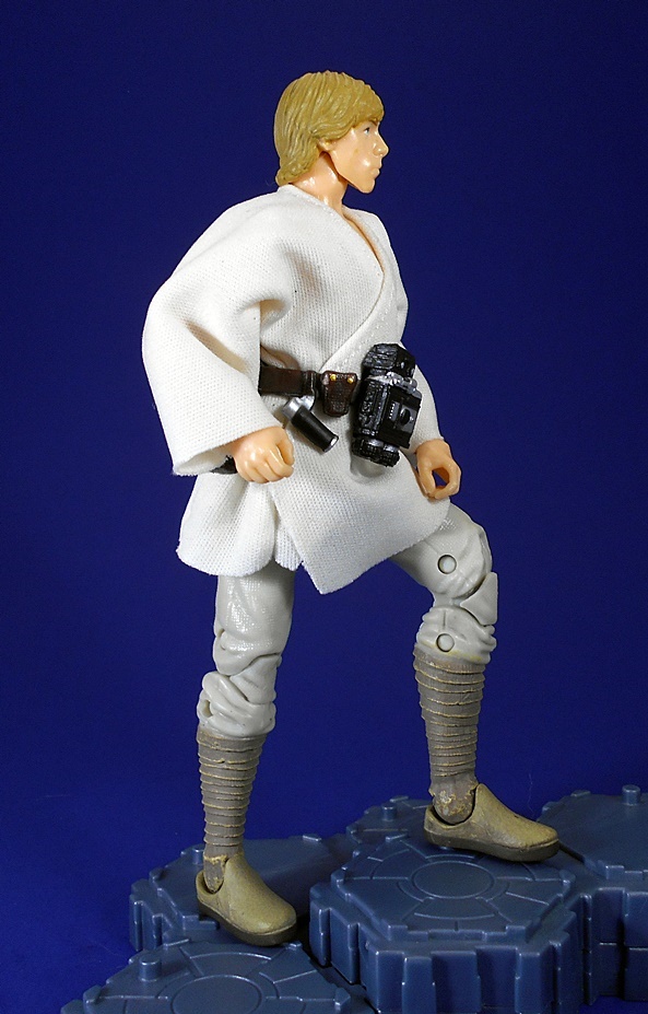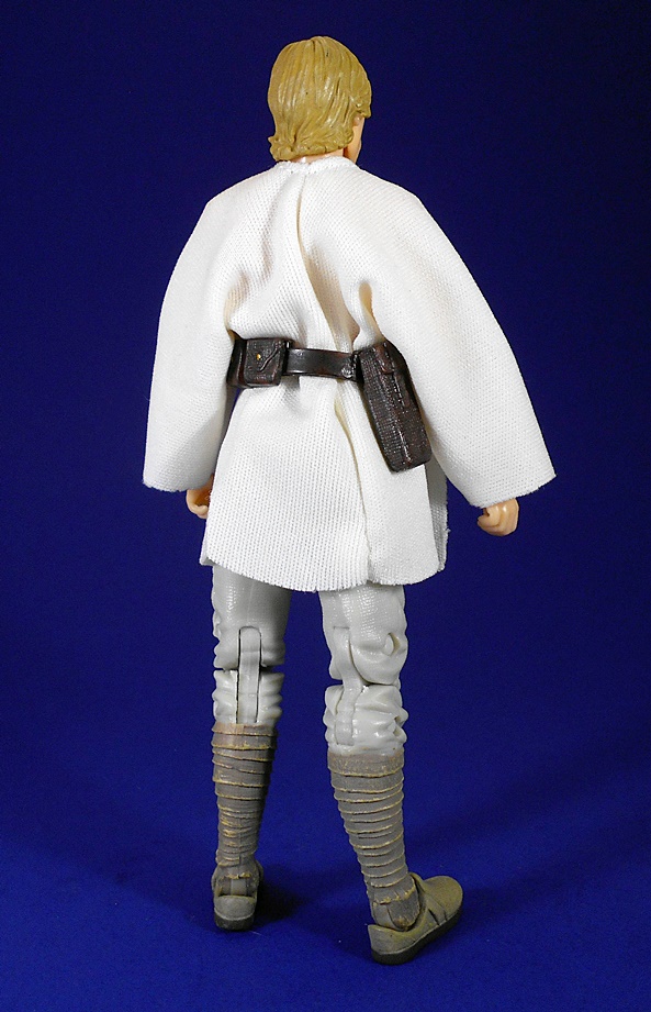 The portrait is passable. I’ve been arguing that the Luke likenesses have been getting worse as this line moves on, but this might be the first one to buck that trend. Or at least it might if not for the waxy plastic that’s used, which doesn’t hold the details all that well. Mine also has a splotch of yellow paint on his cheek. Granted, I have to get in pretty close to find these things bothersome. The expression is a little too dour for me, but then Luke on Tatooine was a sulky little sot, so maybe it actually fits.