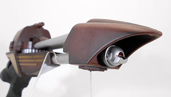 While DST’s phasers have had features like removable palm units, this disruptor is pretty much just a static piece. The “breech” does slide back, but it’s designed to do that in order to reveal the battery compartment. I do recall seeing the Klingons “cock” this thing at one point (I think before beaming down to Genesis), but I think it was achieved by twisting the barrel. Still, sliding this piece back a bit and pushing it forward could achieve a similar look, I guess.