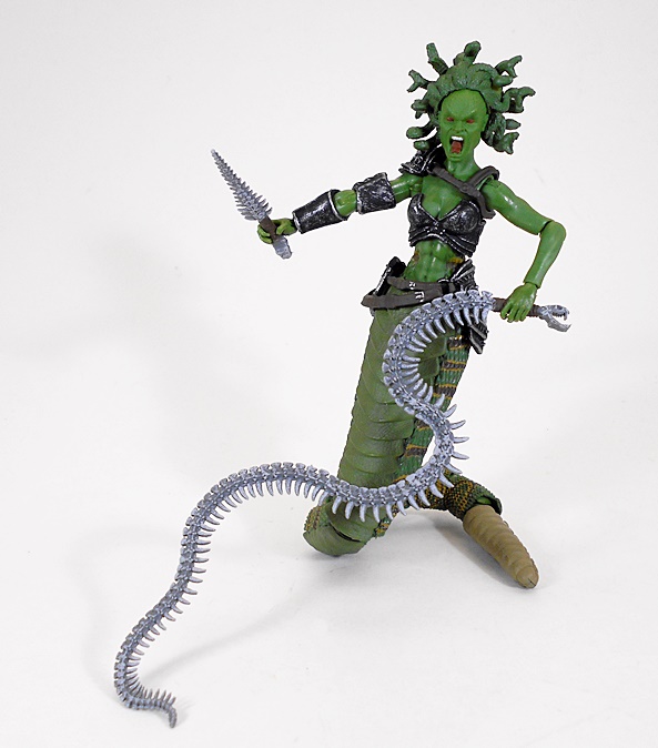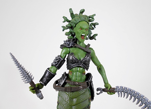 Medusa comes with two weapons, a dagger and a whip. Both accessories look like they are fashioned from bone, or spinal columns to be precise. Actually, the whip looks like it might just be a snake skeleton right down to the tiny skull that makes up the pommel of the grip. Either weapon can be held in either hand and the dagger can be carried through the loop on the figure’s right hip. Quite frankly, I could gush on and on about this figure, but we’ve still got another to look at, so let’s move on to the Coral Gorgon…