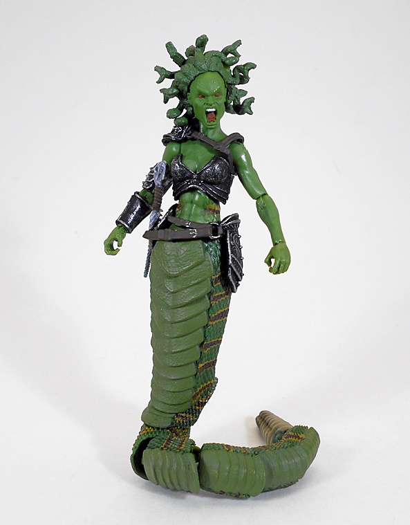 Once again, the figures come in collector friendly blister cards that allow you to bend back the edges, slide out the card and get at the goods without damaging anything. You can keep the pristine card all by itself or just return the figure to the bubble and keep the whole shebang. I’m not one for keeping packages, but with presentation this nice, I’ll be hanging on to these. Each of the Gorgons have custom card art and blurbs about them on the back of the card along with shots of all the other figures in the series that you can collect. Let’s start out with Medusa, the Cursed Gorgon Sister!