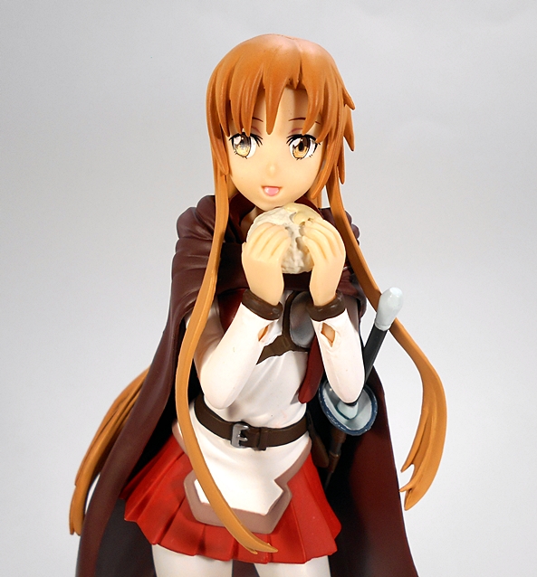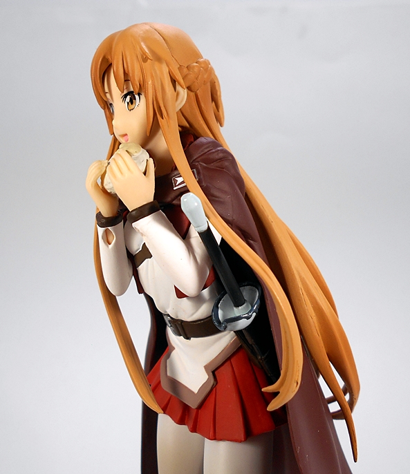 The portrait is excellent, with Asuna’s big eyes printed perfectly and you can see her ears peaking out from her hair. Her mouth is partly open as if she’s about to take a bite of her meal. The hair, however, is what really shines here. It falls over her forehead, frames her face and than cascades down her back. You also get a pair of strands down the fronts of her shoulders reaching all the way down to her skirt. Really nice work!