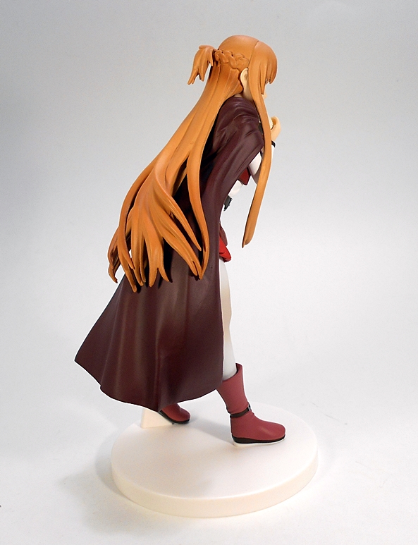 The brown cloak is sculpted to billow out a bit behind her and a good deal of it is obscured by her voluminous reddish-orange hair. From the neck down, the paintwork on this piece is really tight, far more so than the Sinon figure I looked at last time. There’s virtually no slop or bleeding and even though a lot of the colors are rather muted, the coloring is still exciting to me.