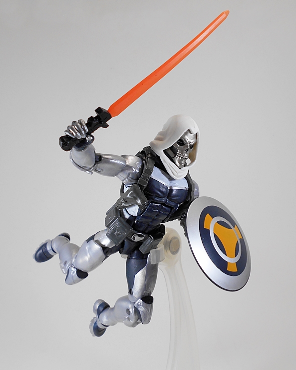 Zuvio features a removable backpack and his staff-gun-poleaxe thing. His Build-A-Weapon parts are a pair of axes. I like these, mainly because you can shorten the handles into pegs and he can hold them pretty well. I think I have all the parts to build whatever it is they go to, but I’m not motivated enough to find out. How many figures is that so far? Seven?