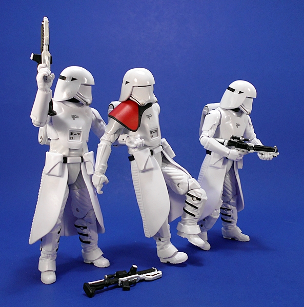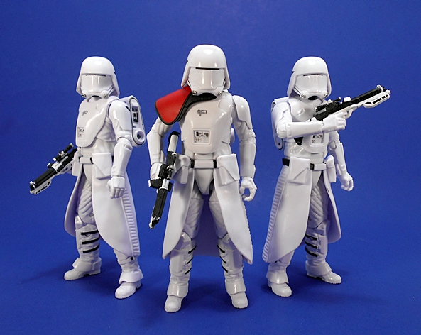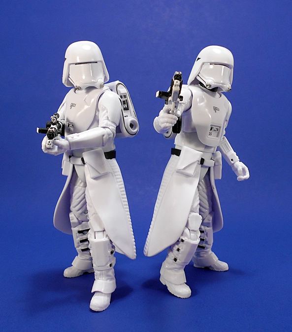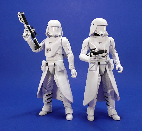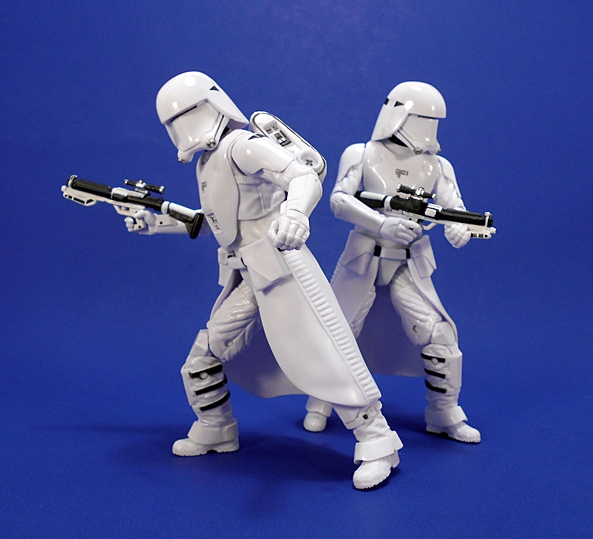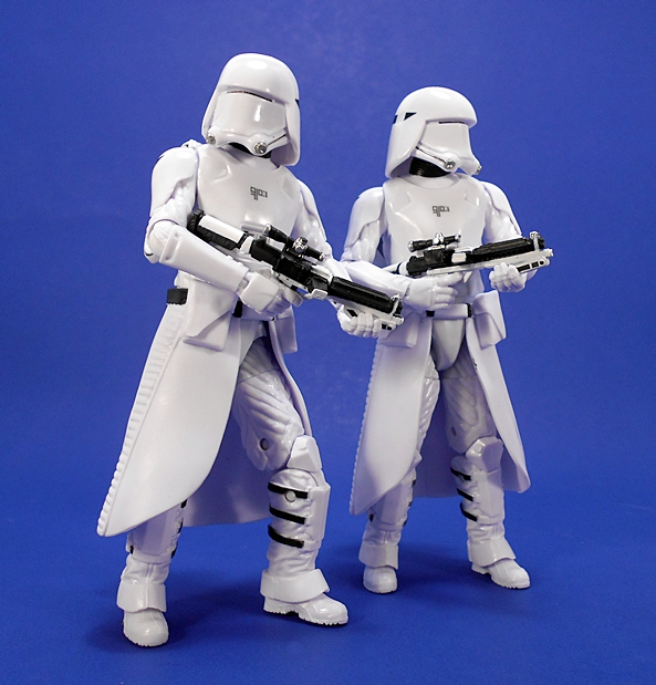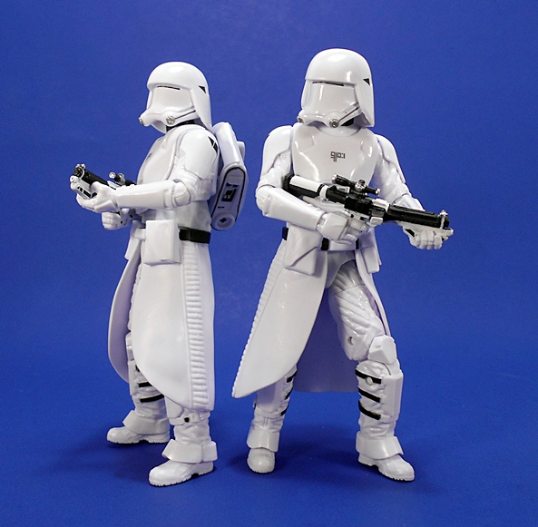 Last time, I commented about how I like the Original Trilogy Snowtroopers design better than these First Order guys, and I’m sticking to that. of course, that’s also like me saying, I like prime rib better than cheeseburgers. It’s all good, and this new design is still plenty cool. Plus, these are now among my favorite 6-inch Black Series figures, or at least my favorites from The Force Awakens assortment. The quality of paint and plastic is excellent. What should be glossy is glossy, what should be matte is matte, and while there aren’t a ton of paint apps, what’s here is all pretty nice and sharp. The consistency between these two figures is also a lot better than the handful of regular First Order (or Imperial) Stormtroopers I have. Don’t even get me started on the drop in quality between these guys and my Flametrooper. There’s a good reason I only own one of them.