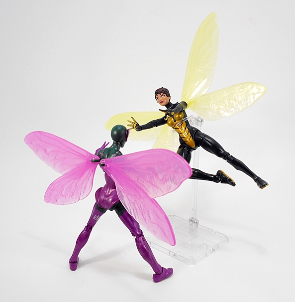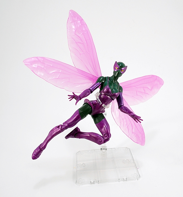 If you own the modern Legends Wasp figure than you’ll know what to expect from Beetle’s articulation. You get rotating hinges in the shoulders, elbows, and wrists, ball joints in the hips, double hinges in the knees, hinges in the ankles, a ball joint under the chest and both a hinge and ball joint in the neck. The wings connect to the body with rotating hinges and the lower wings are hinged as well. There are no mushy joints here and she is lots of fun to pose.