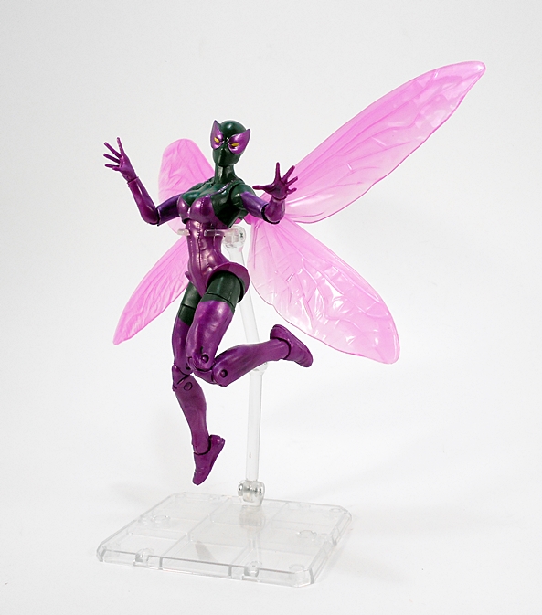 Also simple, but excellent is the paintwork here. The entire deco consists of her metallic purple costume and green “skin” with only her two yellow eyes to break up the palate. The paint itself looks great and the lines are sharp and clean with no virtually slop to be found. The coloring is capped off by a brilliant translucent purple cast of the wings. All this adds up to a rather striking figure.