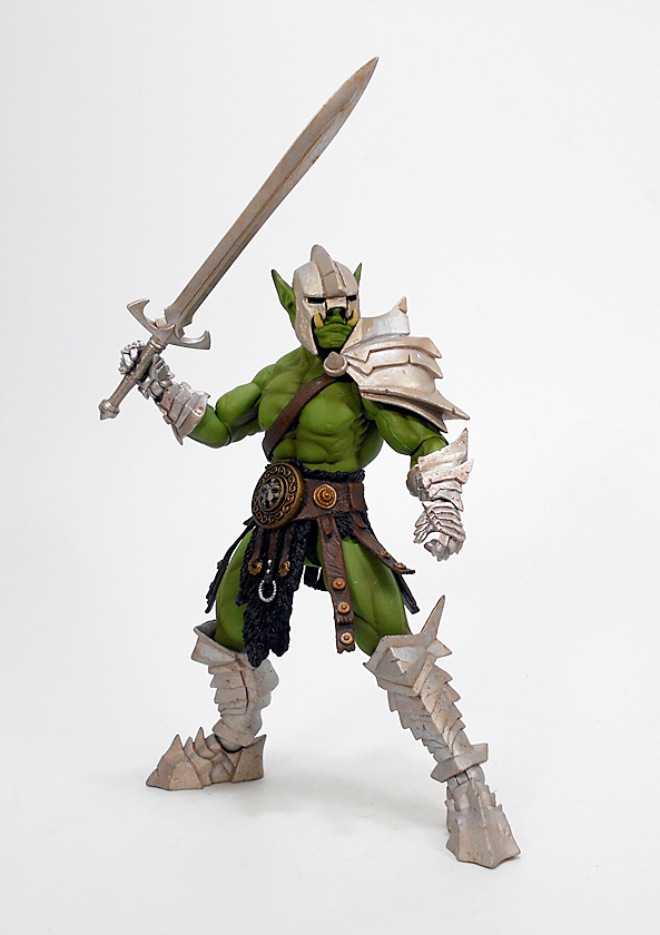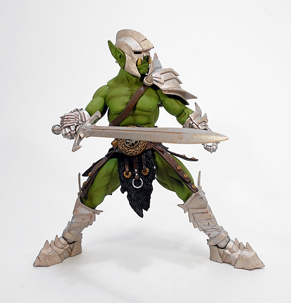 Like any good Orc, Urkku comes with plenty of implements to dismember his enemies. For starters, he features this long sword, which is the same sculpted accessory we saw with Gorgo Aetherblade. This one is all painted silver and has that same beautiful rusty finish as the armor. I’ve got a modest collection of real swords, and I have to say they really recreated an authentic looking finish on an antique blade.