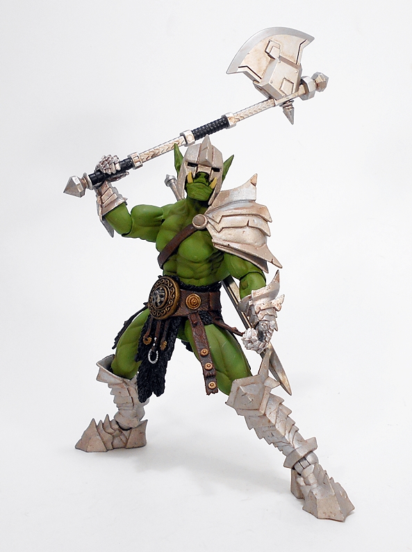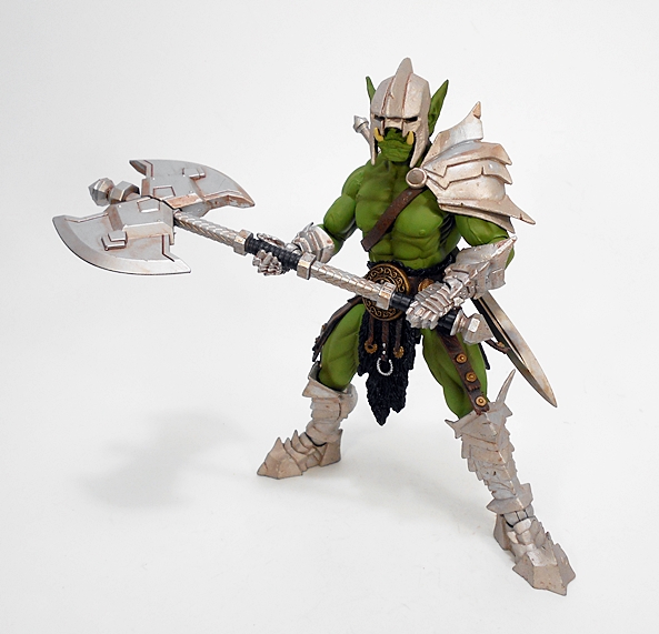 And finally, Urkku wields the same giant axe as Gorgo, repainted in a uniform silver with a rusty finish and with black grips. Once again, you can convert the axe to a double-bladed weapon if you want to give this guy a little more cutting power. I’ll go on record and say that I really dig this version of the axe a lot more than the flashier painted one that came with Gorgo. It just looks like more of an everyday weapon.