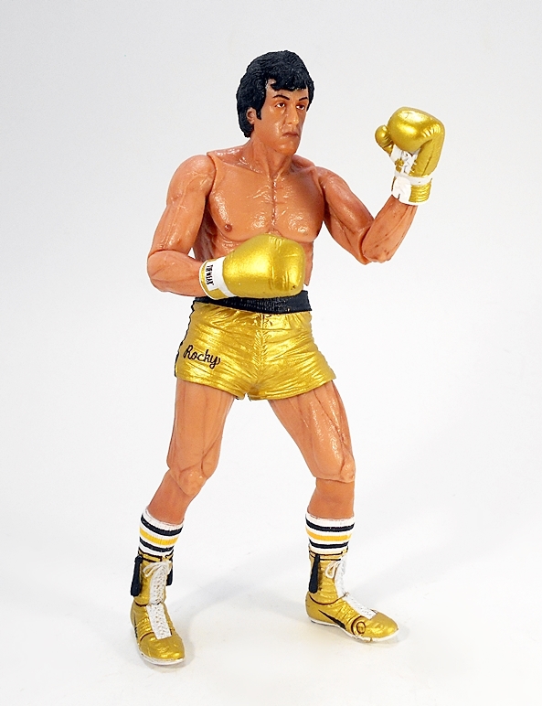 While not quite equaling the decadent packaging of the Ultimate Series, the presentation here is not at all shabby. The figures come in window boxes with some handsome gold foil work on the front portraits and on the spines. The side panels identify the character and the series, so you can line these up on a shelf and always know who you’re reaching for. This is simple, elegant, and collector friendly packaging at its best. Let’s start with Rocky!