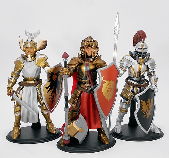 Besides the beautiful new deco on the armor, the real draw here is the head sculpt. There are a fair share of humans in this line, that is presuming the knights are all humans, but very few with exposed faces. I only own two such figures, this guy and Sir Gideon. I recall there being one more, that I didn’t buy. Either way, the head sculpt here is good, but the paint on the face is ever so slightly disappointing. It’s applied very neatly, but there’s not a lot of complexity or depth to it. The eyes, in particular, just aren’t all that convincing. Hey, after gushing on and on about these figures for months, there was bound to be something I could nitpick, right?