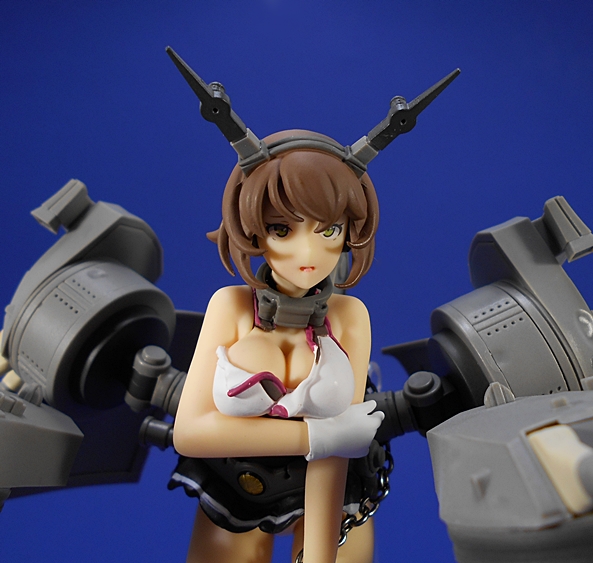 Ahoy, Captain… fan service spotted in the aft section! Ooooh, my! Her armaments consist of her four battered 41cm Twin Gun mounts, which feature the bulk of the articulation in this piece. They peg into the sides of her arming belt where they have rotating hinges. The upper shoulder guns can pivot and the barrels will raise and lower. The lower guns can hinge up and down as well as pivot, and they’re barrels can raise and lower as well. While I haven’t Featured her here yet, it’s worth noting that the battered armaments are compatible with the regular Figma Mutsu’s and vice versa. The anchor that pegs to her leg features a real chain that wraps around her leg, travels behind her gear and pegs into the right hip of her arming belt.