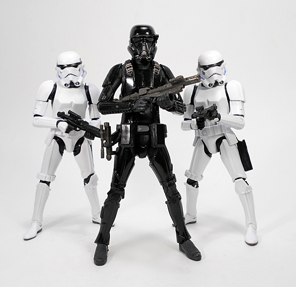If I wasn’t already sold on this movie, all the new Imperial troop designs would certainly have swayed me. And so it should come as no surprise that I really love this figure. It’s a cool new design and I am super excited to see these guys in action on the big screen along with the other new trooper designs. Once things calm down a bit, I’m hoping to pick up at least a couple more of these black beauties. And a special thanks to The Empires Elite for making me realize how great the Death Trooper looks with the Shadow Squadron troopers, because I totally stole the idea of that group shot from that blog.