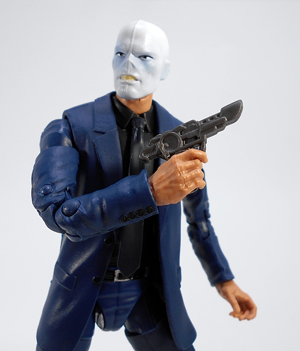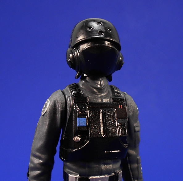 They also did a fabulous job painting the cockpit windows and framework, the black striping on the top, and the tiny red dots on the laser cannon. The rest of the coloring consists of the blue-gray hull and the black panels on the “wings.” My only question is, does anyone know if Mattel issued a white version, because I’d love to pick up one of those too.