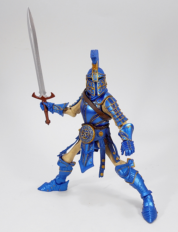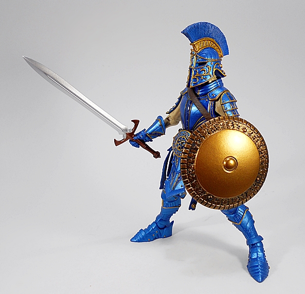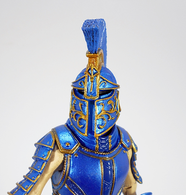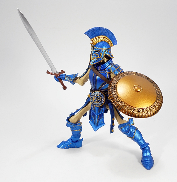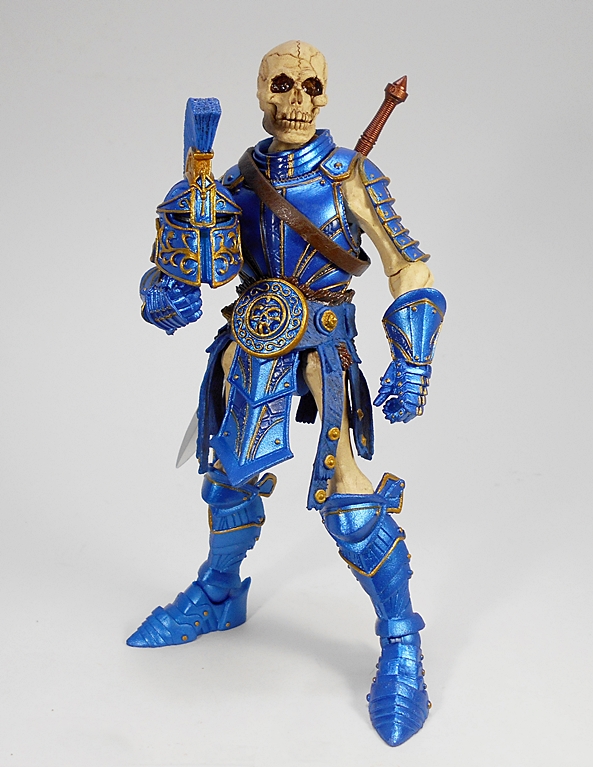 And hooooly crap is this a gorgeous figure. Just because you’re a skeleton warrior doesn’t mean you have to wear dreary old armor. Pixxus is living proof, er… living dead proof of that, as he’s kitted out in what is easily one of the most striking armor decos of the entire line. In case you haven’t noticed, he re-uses a majority of the parts from Vitus, with only the arms and upper legs swapped out from flesh for bones. The armor is now painted with an outrageous metallic blue and all the trim is decked out in gold. The combo is a feast for the eyes, so much so, that I choose to believe this armor is somehow meant to be enchanted, because nothing that’s not magic should ever look this good.