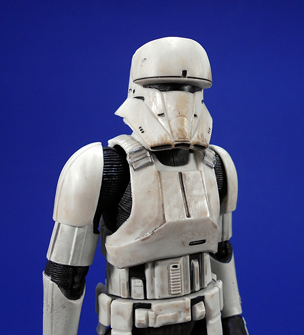 I really dig the helmet design on this guy. While the Death Trooper helmet looks a little kit-bashy to me, this one stands out as pretty unique and distinctive. The only thing I really find familiar is the slit visor, which reminds me a little bit of the First Order Snowtroopers and Flametroopers. The pronounced plate above his visor looks like it might be designed to articulate downward and shield his face on the costume, but it is sculpted in place on this figure.