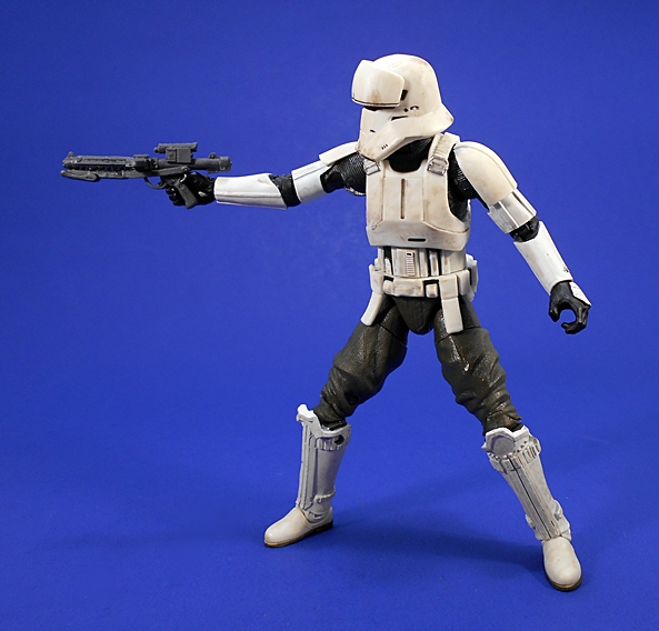 The points of articulation here are very similar to what we got with most of the 6-inch Black Series troopers, although with a little less armor, some of those points feel like they have a greater range of motion. The arms have rotating hinges in the shoulders, elbows, and wrists. The legs are ball jointed at the hips, with swivels in the thighs and double hinges in the knees. The ankles are hinged and have lateral rockers. There’s a swivel in the waist and a ball joint just under the chest. His neck has both a ball joint and a hinge. The joints on this guy feel great and he’s a lot of fun to play around with.