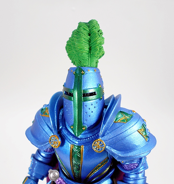 This is my fourth Dwarf, but if this is your first look at one of these, you should know that they share the upper body and arms with the armored humans of the line, and only the legs are shorter and dwarf-specific. Jorund’s bio indicates that he’s a rather atypical Dwarf in that he’s a master of the mystic arts and I’d like to think that’s reflected in his spectacular, and obviously enchanted, armor. Indeed, with the metallic blue, gold, green, and purple deco, this is one of the most visually striking suits of armor in the entire line, and that’s saying a lot! The quality of paint that T4H uses on these figures continue to amaze me as does the precision of application. Every tiny sculpted rivet on this suit is painted and the emerald green and gold look superb against the blue. It’s absolutely gorgeous!