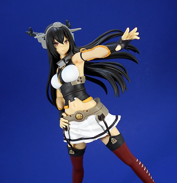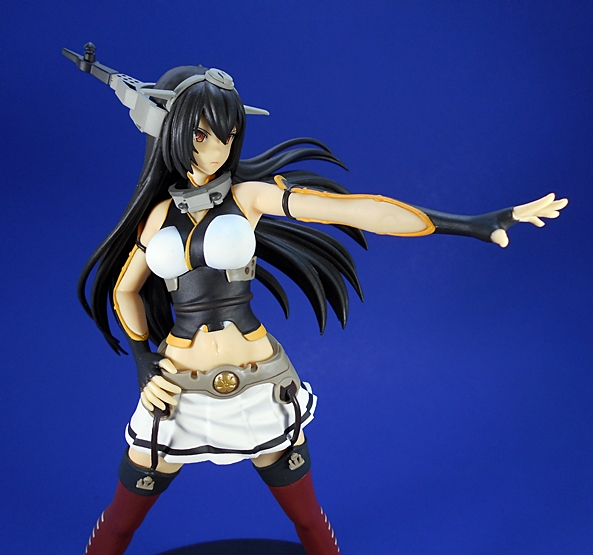 …because everything else here is nothing but wonderful. Nagato is absolutely gorgeous and it’s hard to believe that she qualifies as a prize figure by any stretch of the imagination. The Secretary Ships, Nagato and Mutsu are my favorite two character designs from the anime and it’s awesome to see one of them get this Super Premium format treatment. The costume includes her sleek rudder boots, crimson stockings, which are held up by straps that attach to her armament belt, and secured by adorable little anchor snaps! She has a very short white skirt, and her cut-off top exposes her midriff and shoulders, and her long, finger-less gloves. I also love the simple but effective pose here. She’s looks so damn majestic standing there with her right hand on her rigging belt and her left arm thrust out, about to issue the order to attack the cursed Abyssinal Fleet.