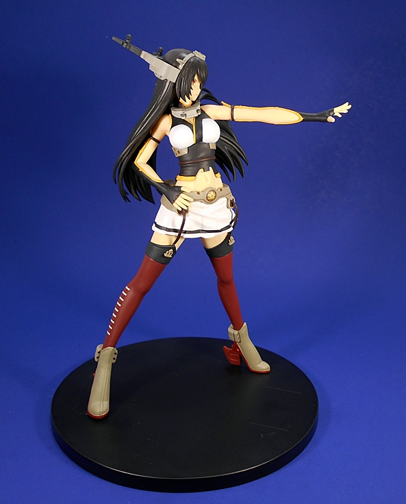 While the Destroyers came in window boxes, Nagato comes in a fully enclosed and very colorful box with lots of pictures and very little in the way of English text. It’s a pretty damn big box too! The Destroyers were large for prize figures and Nagato is similarly scaled, measuring in at a little over 9-inches tall. Between that and her wide stance, the box had to be considerably larger. Inside, the figure comes nestled between two clear plastic trays with the stand detached. All you have to do is plug her into the base and she’s good to go. But wait… that’s it? Isn’t there something missing? Well, that’s the disappointing part, and I’ll save that for the end.