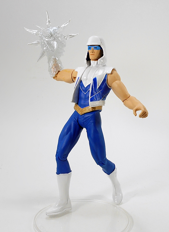 A spiked ice ball! This thing is a pretty big accessory, and because of it, Snart here probably uses more plastic than any other standard release in this line. This thing looks every bit as good as the other ice arm and those spikes are really sharp. I got a couple of ouchies when I was trying to peg it into the arm.