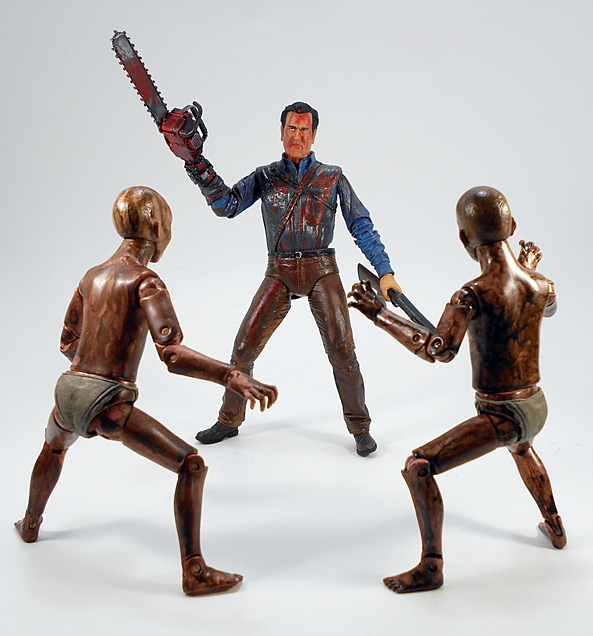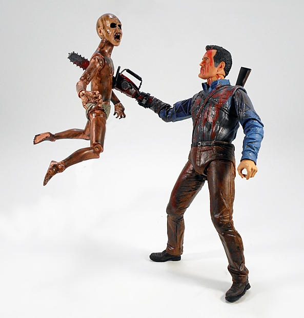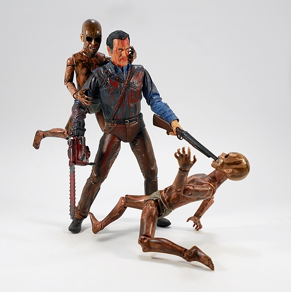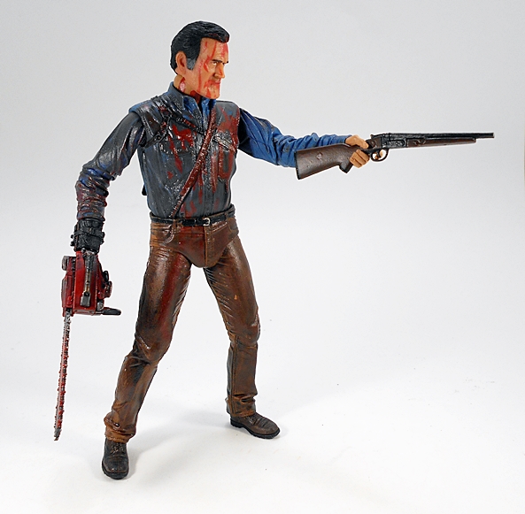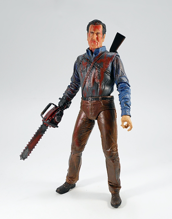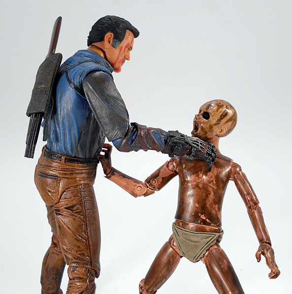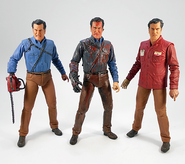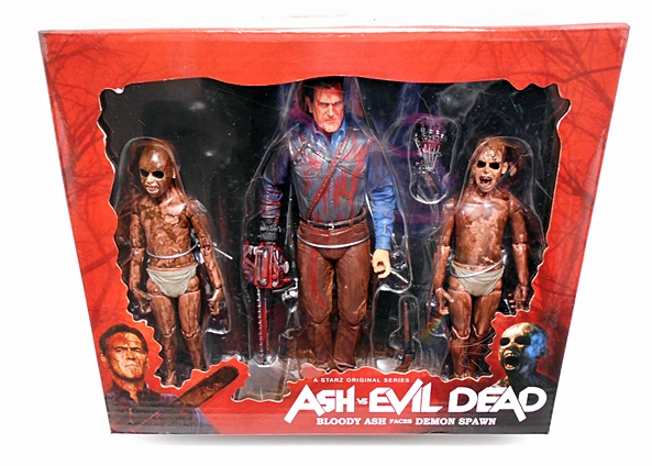 This set is one of those “you gotta buy a variant of a figure you probably already have, so you can get something new” deals. I’m not being snotty about it. It’s just a reality that toy companies, especially smaller ones like NECA, need to get their money’s worth out of molds so they can cost out new ones. As a result, this three-pack includes a repainted bloody version of Hero Ash and two of Lucy’s hell-spawn children. The set comes in a window box, it’s collector friendly, and features a deco that matches the previous releases in this line. Let’s start with Ash…