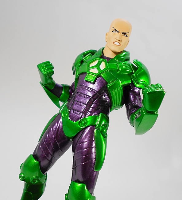 Similarly, I absolutely love what Koto did with this statue. While they have mixed things up with some recent DC ArtFX+ releases, the poses generally favor museum-style composition over action. Here Lex stands with both hands balled into fists in a pose that just oozes power. If I were to nitpick one thing here, it’s that I wish they had orientated him so that his head was turning to his right and not his left, but only because I think he would display better with the ArtFX+ Superman that way. Then again, when I do put them together the right way, it looks like Supes is staring at Lex suspiciously, as if to say, “So you want to join the Justice League, eh? Pfft… over my dead body.” To which I say, “Pssst, Superman, I hate to break it to you, but you don’t survive The New 52. Oh, and Lex becomes a kind of Apokolips God-being.” Either way, as a stand alone piece, I think the pose here is flawless.