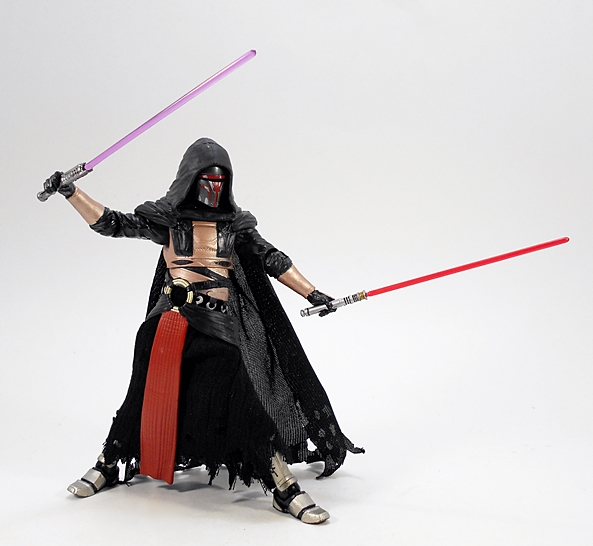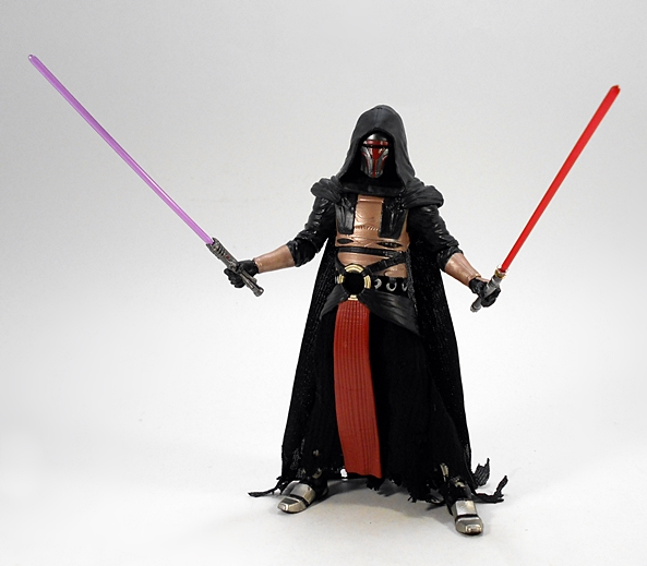 Darth Revan comes with his two lightsabers, and I’ve got to be honest, as much as I played this game, I didn’t even remember him having two until I went back and looked at some of the art from the game. The designs on these hilts are really cool, particularly the one with the purple blade. And yes, both blades can be removed easily by simply un-pegging them. Sadly, there’s nowhere on his person that you can hang the hilts.