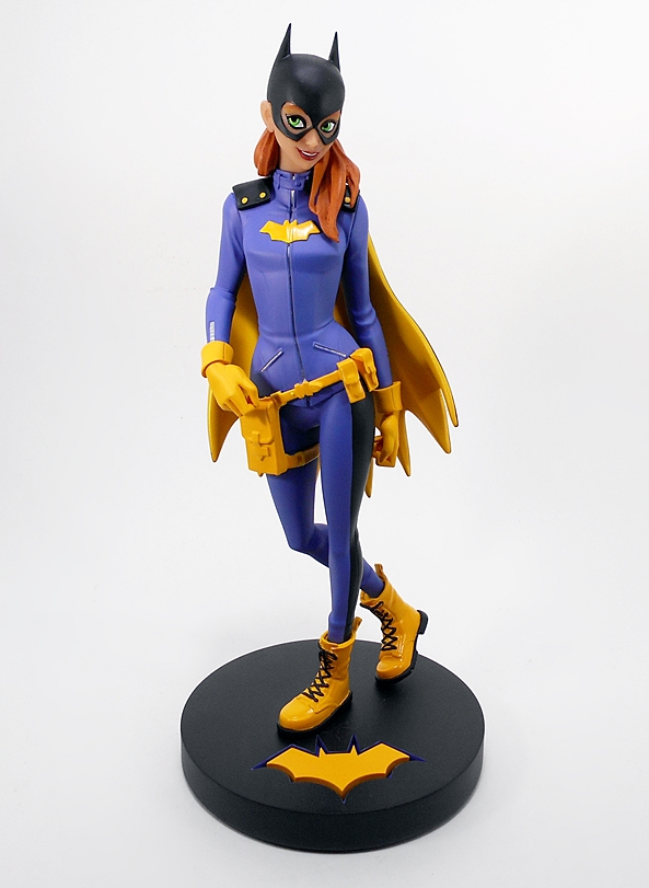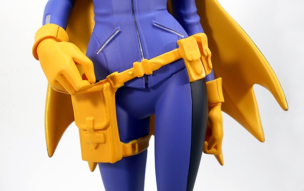 Where to begin the love fest? Well, for starters I think the pose really captures this iteration of the character perfectly. She’s got one foot kicking back behind the other, a little playful lean on her right hip, and her left hand fiddling with the pouch on her utility belt. They did such a great job bringing this costume to life. There’s just enough detail to keep things interesting, but it still manages to capture that rather simple animated art style of the book. And she’s so damn colorful! Granted, a big part of that comes from this costume design, but credit has to be given to the team of artists at DC Collectibles for translating it so perfectly into this piece. The purple and black matte finish on the suit is smooth and practically flawless and it contrasts so beautifully with the bright and glossy yellow used on her big, chunky boots, gloves, bat symbol and utility belt. Some silver paint on her zippers and black lacings on her boots round out the costume beautifully.