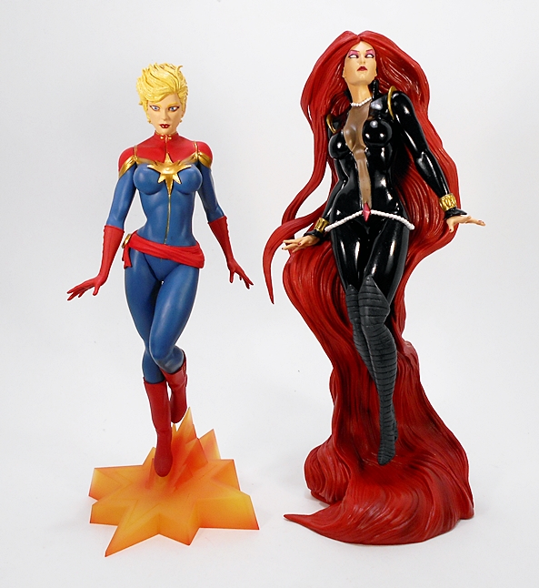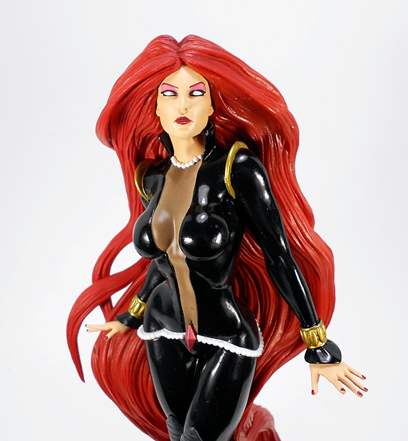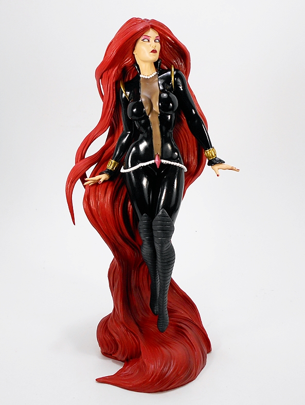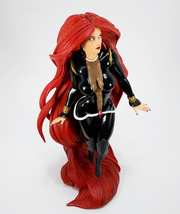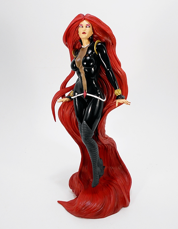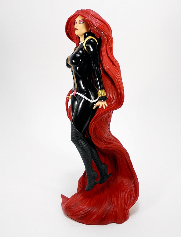 Well, it turned out pretty freaking great, thank you very much! Not only did the statue arrive without any breakage, but the paint quality and overall coloring on this piece are both superb. Setting her up simply requires that you peg her foot into the base with the metal rod and she’s all ready to go. Before getting started, I will mention that while this figure is billed as being cold-cast porcelain, there’s definitely some mixed media going on, namely the plastic used for her the skin tone of her face, and I’m pretty sure the hands and some other fixtures are resin. That’s not a complaint, mind you, as the results are fantastic, but just an observation. And the statue still has a remarkable heft to it, especially as I’m used to the smaller Cover Girls.