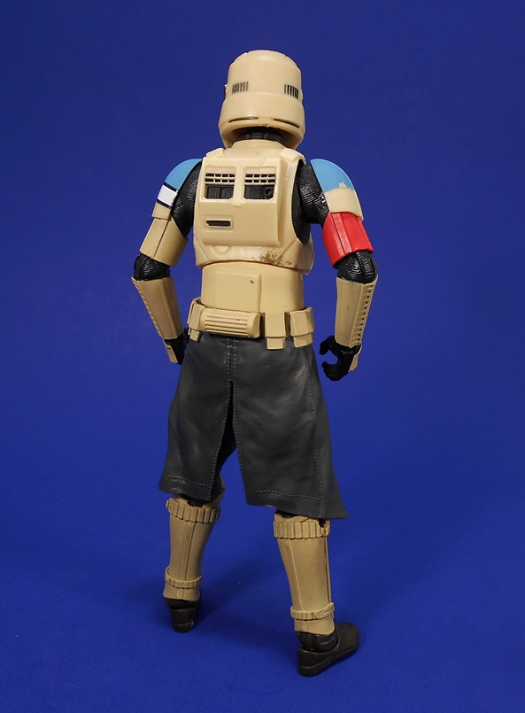 So, this guy is basically a modified version of the regular Scarif Stormy. Instead of the hip armor with the ammo pouch, he has a kama, which includes a slightly different sculpt to his belt. Otherwise, the armor sculpt is identical to his subordinates. When it comes to deco, he does have a blue stripe across his chest and shoulders, as well as some more splatter painted on his chest and helmet.