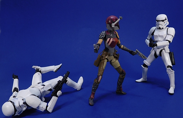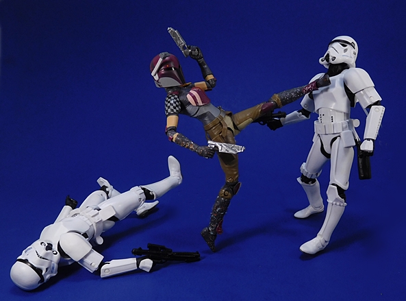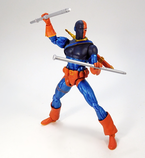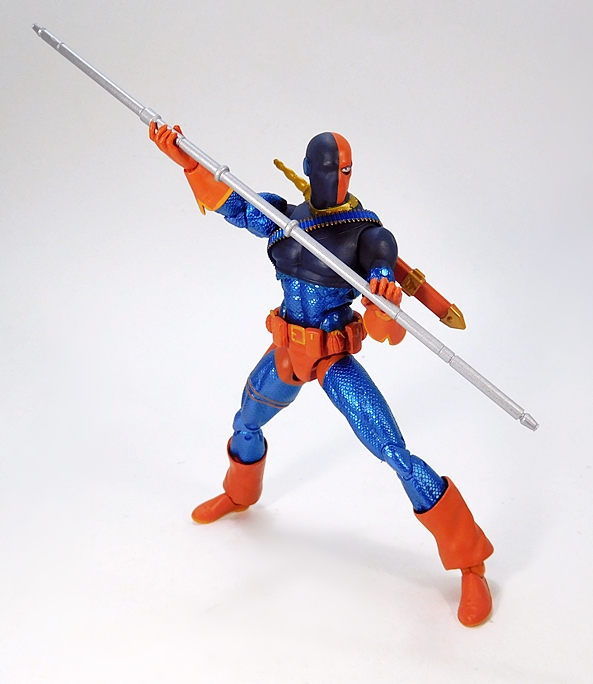 Most of the range of motion is in the shoulders, and just look at this guy’s reach! He has a fairly good balance too. Those arms are pretty heavy and yet he’s still holding his own with them both way out in front of him. I wish there were some hinges in those ankles, but maybe next time!