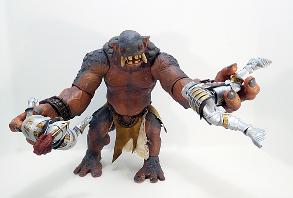 The articulation here is pretty basic, but probably not off base for a giant troll, because these are giant lumbering brutes. You get rotating hinges in the shoulders and elbows, rotating hips, and swivel cuts at the ankles, wrists, and neck. The shoulders feature some pretty strong ratcheting joints, which we’ll see is a good thing considering the size of his weapon. His hips are sometimes a little weak for the task of supporting his bulk, but most of the time they seem to hold fine. While the points are all there, there isn’t a huge range of motion in any of them. I wouldn’t call that a complaint, because I wasn’t expecting all that much and there’s still plenty of pose-ability here to have fun with.
