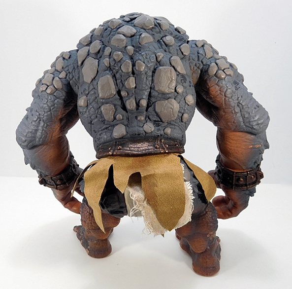 The Stone Troll protects his modesty and covers up his own manly stones with with this belted loin cloth. The belt has a hammered metal appearance, which matches that of his wrist cuffs. It’s sculpted as part of the torso and I really dig the way his paunch hangs over the top of the large medallion. I wouldn’t say he’s a fat Troll, but he doesn’t look like he’s missing any meals either. The actual loin cloth presents a bit of mixed media to the figure with the top layer looking like worn animal hide and the bottom layer appearing as frayed cloth.