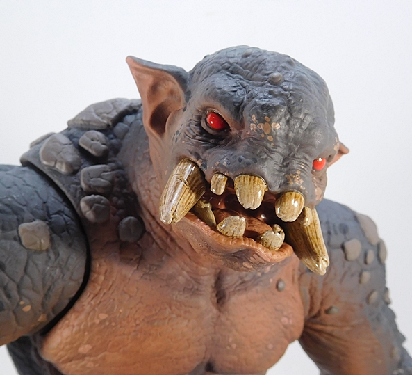 And that brings us to this lovable mug, which really presents as the most triumphant feature of this Troll. It strikes me as very Lord-of-the-Rings-ish, and I’m talking about the Peter Jackson movie aesthetic. The super glossy red paint used for the eyes looks magical and the paintwork and sculpted detail on his teeth and tusks is mind-blowing. He has a little bit of mud splatter on his face and body, and I just adore his little pointed ears. Hot damn, T4H really poured the love into this guy.