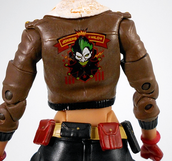 There are some wonderful details here too. The front of the jacket features some painted metals, and you get some really cool “Joker’s Wild” artwork across the back of her jacket. She even has a playing card tucked into her right stocking. And yup, it’s The Joker!