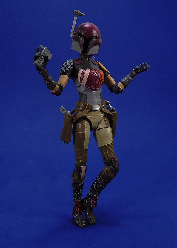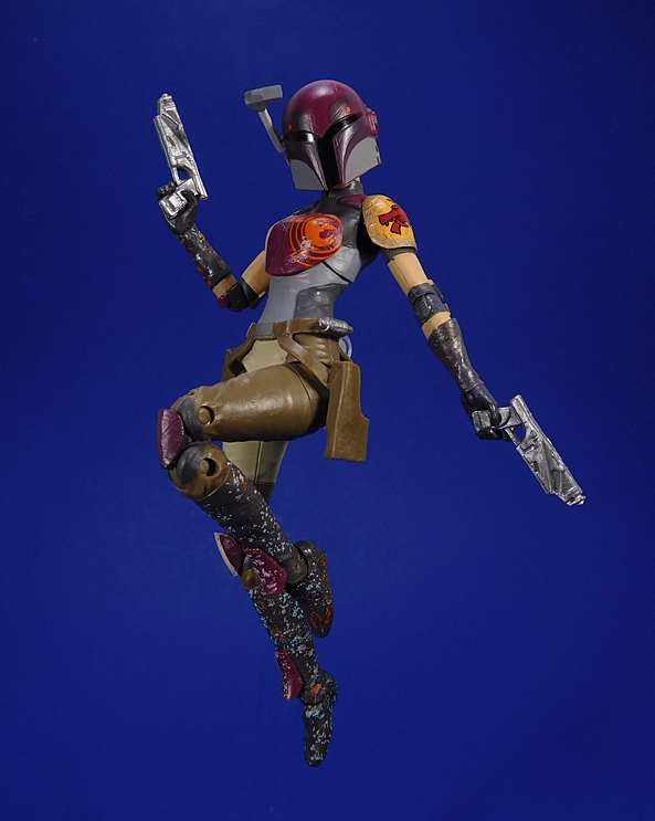 Putting a Mandalorian in the show could have gone horribly wrong, but Rebels makes the character work and that goes double for Sabine’s character design. Rather than just put her in Femme Fett armor, she has a distinctive look, made even more unique by her personal artistic touches to her armor. All of that is wonderfully recreated in this figure. The personalized paint on her chest and shoulder armor looks fantastic and served up with a pretty realistic looking weathering, which sets it apart from the more brightly colored markings on the 3 3/4-inch figure. I can’t say the same for the speckling on her boots and gauntlets, which looks really overdone here, but it’s not something that ruins the figure for me, so I can get over it. Suffice it to say, sometimes less is more.