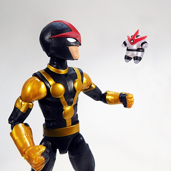 Nova’s articulation is pretty damn good, especially for a little guy. The arms feature rotating hinges in the shoulders and hips, double hinges in the elbows, and swivels in the biceps. The legs have ball jointed hips, double hinges in the knees, and swivels at the tops of the boots and again up in the thighs. The ankles have hinges and lateral rockers. The torso includes a waist swivel and an ab crunch, and the neck is both ball jointed and hinged. This is a great looking figure and does the character proud.