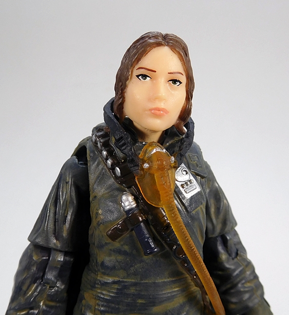 The head sculpt is very similar to the Jedha Jyn, but it’s definitely new, or at least reworked. Here she has her ears exposed through her hair. The quality of the sculpt is about the same, with very soft features and I think the likeness is only there if you know what you’re looking at, and even then that might be a reach. As usual, the paint is extremely basic giving Jyn that wonderful dead-inside look to her eyes and uneven paint on her lips. Hasbro has obviously shrugged off any credibility for making this a true “Collector’s” line when it comes to the paintwork on the heads.