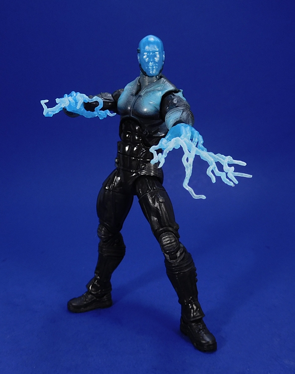 The design that I hated on screen actually sort of works for this figure and Hasbro certainly put some work into it. You get all new sculpting for the body with a lot of nice detail and texturing that adds some interesting qualities to what is a nearly all black buck. Electro does have some blue paint spray on the shoulders, chest, and forearms, but I don’t know that it really comes across as it should. If I was totally unfamiliar with this character and somebody handed me the figure, I’d be more prone to say he’s supposed to have some kind of ice powers as opposed to electricity. The articulation is similar to what we got with Beetle, but the legs on this figure don’t like to cooperate. I blame the sculpted cuffs on the ankles, which really curtail the range of motion there. Every time I try to get him in a wide stance, he just looks awkward.