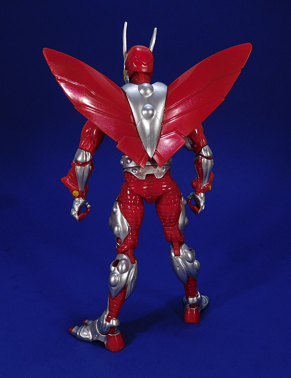 The wing assembly simply pegs into the back and you get some more of that lovely silver paint connecting them and some pretty trippy metallic green paint on the front insides of the wings. It all makes for a very distinctive looking figure.