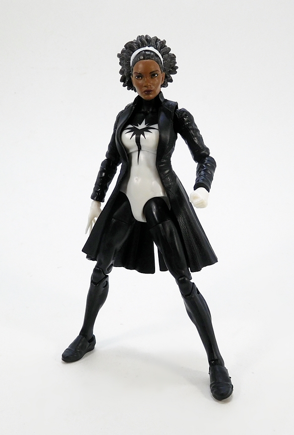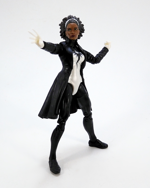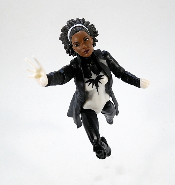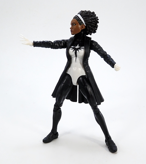 Whether you best know her as Pulsar, Spectrum, Captain Marvel, or just Monica, this is a character that is indeed well overdue for the Marvel Legends treatment. I’m pretty sure even Toy Biz never got around to immortalizing her in plastic. Maybe she had a HeroClix figure? Whatever the case she’s out now and I must say Hasbro did a great job with her. She’s built off the standard female buck, with sculpted sleeves on her arms to work with her jacket. Her starburst pattern is perfectly printed on her chest with the snappy inverse black and white coloring. And let me take a moment to say that the white plastic Hasbro used for the torso and gloves is absolutely gorgeous. It has a slight pearlescent sheen to it, but mostly it just looks so bright and snappy. I hope we see more of this stuff in future figures.