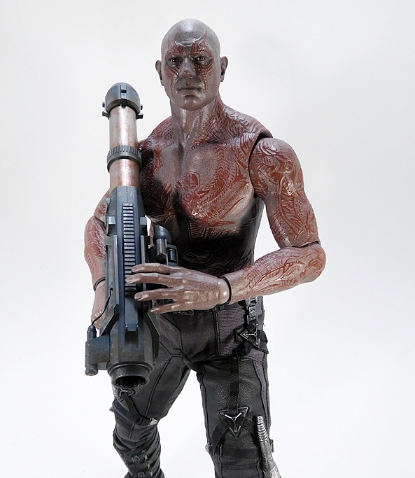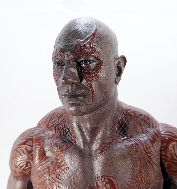 For the most part, Drax almost looks like he jumped right off the screen… almost. There’s something about the upper body that just doesn’t click with me. I’ve spent some time comparing him to screen caps (something I almost never have to bother doing with Hot Toys figures) and while some look pretty close, others look far off. In the end, I’m still undecided on the torso. From head on it looks fine, but if turned to profile it looks too thin. Either way, I’m certain that the arms needed to be beefier.
