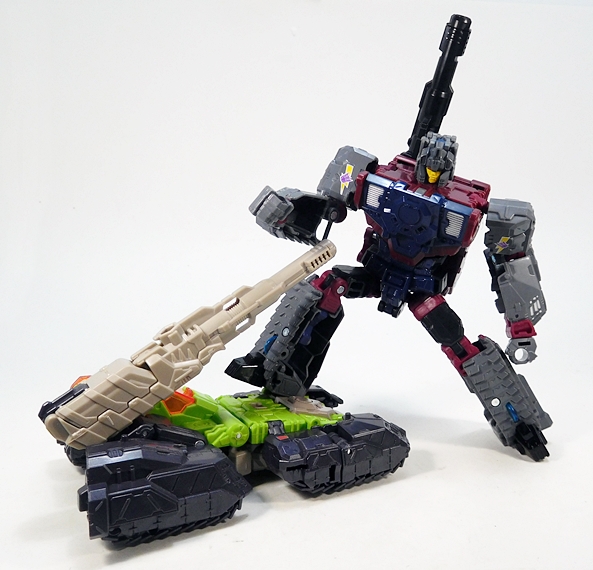 Well, I certainly do have some mixed feelings about the alt mode. On the one hand, Hardhead is a pretty distinctive tank design and this mold nailed it perfectly. As a result, when you repaint it, it’s going to be very obvious who it was originally intended to be. It’s tough, if not impossible to look at this guy and not see a Hardhead repaint. It doesn’t help that this is one of the few Deluxe Titans Return molds without ways to customize the weapons load out. Being able to mount the gun differently would have helped. And, of course, the original G1 Quake was a pretty conventional looking Earth tank, so this isn’t even close. But I’m happy to go with this as what he might have looked like before he got to Earth and scanned one of the local tanks.