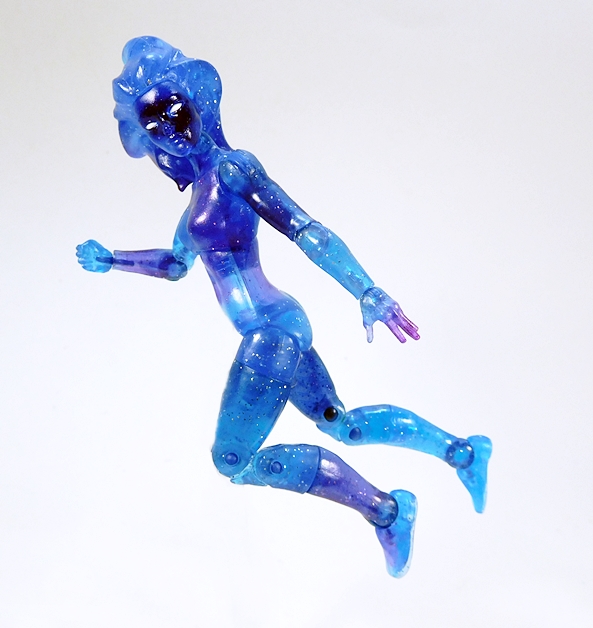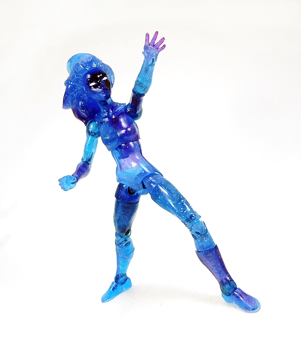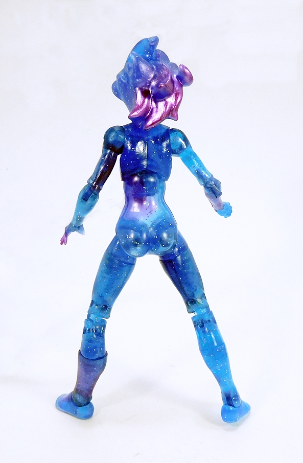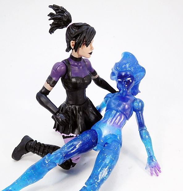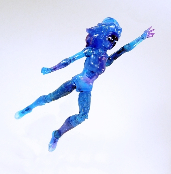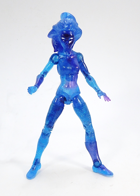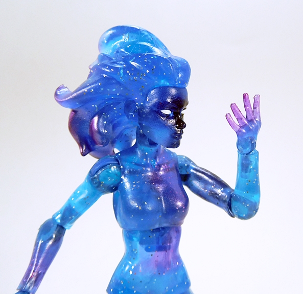 That having been said, this is a pretty cool looking, albeit simple, figure. As her name suggests, this character is literally a sentient singularity and she kind of looks like a nebula pressed into human form. The figure uses a beautiful mix of translucent blue and purple plastic with sparkly glitter mixed throughout and the effect is damn near spectacular, especially given some bright lighting. Given her size, I’m tempted to say she’s built off of the Nico Minoru buck, but that figure had so much unique sculpting, I’m not sure how much of it they could have reused, other than maybe the upper legs, arms, and lower torso. Either way, she’s a smaller figure that is evocative of a teenage girl.