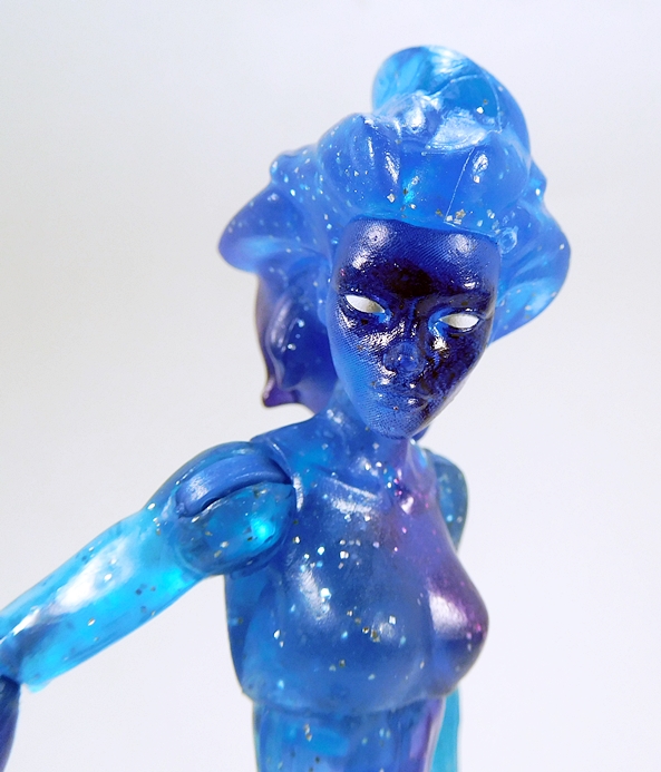 I’ve had my share of translucent figures, but none have looked quite this good, and I’d say that’s because of the gradations of blue and purple in the plastic. Also, while translucent plastic isn’t the best at holding sculpted detail, the portrait is still pretty damn good. They even did some halftone printing on her face and the eyes are painted in white.